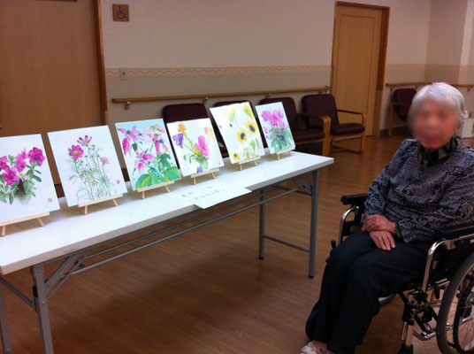 ※添付「展示写真」は受講者の方の過去の絵画を展示し、 施設内のご利用者様やスタッフに見ていただいたときの写真です。