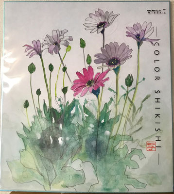 紫色の花と白い花の違いに気をつけて彩色しました。