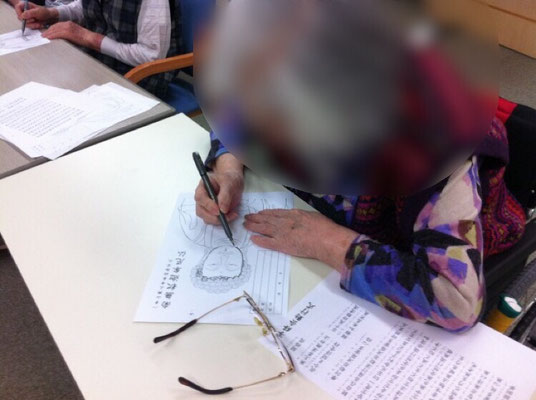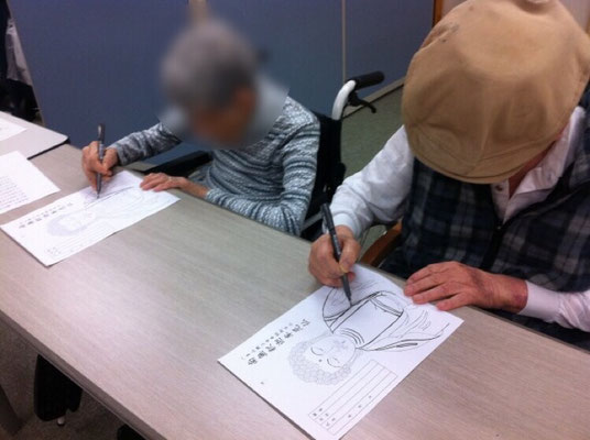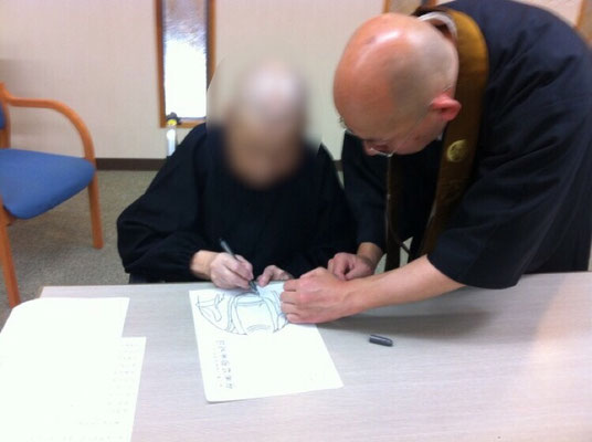 仏様を薄く印刷した紙と筆記用具で、仏様の絵をなぞります。