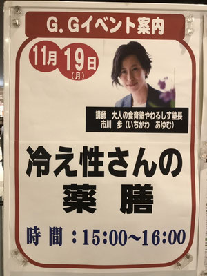 11月19日八事イオンにて「冷え症さんの薬膳」を開催しました。