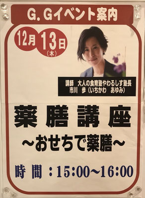 12月13日八事イオンにて「おせちで薬膳」を開催しました。