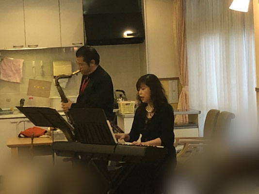 蝉の鳴き声も聞こえ始め、夏の訪れを感じさせるお昼間の一時、懐かしいジャズの曲や映画音楽など、サックスとピアノの音色を楽しんでいただきました。