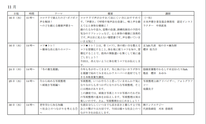11月出張講座のご案内